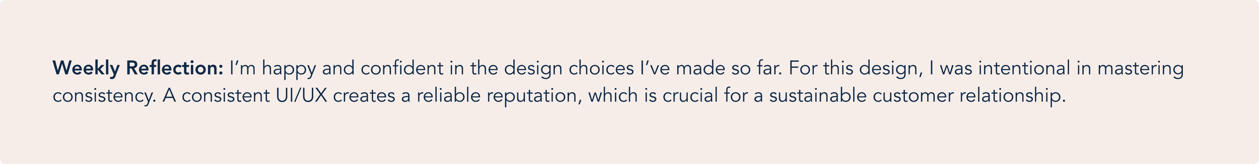 Wireframes are my visualization tools that serve as the blueprint for my user interfaces. In addition, they help me ensure all elements are addressed and create a necessary order of execution when designing high-fidelity mockups in the following week.
